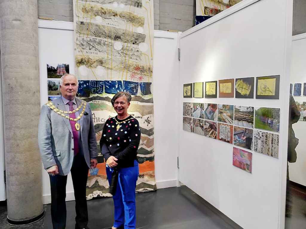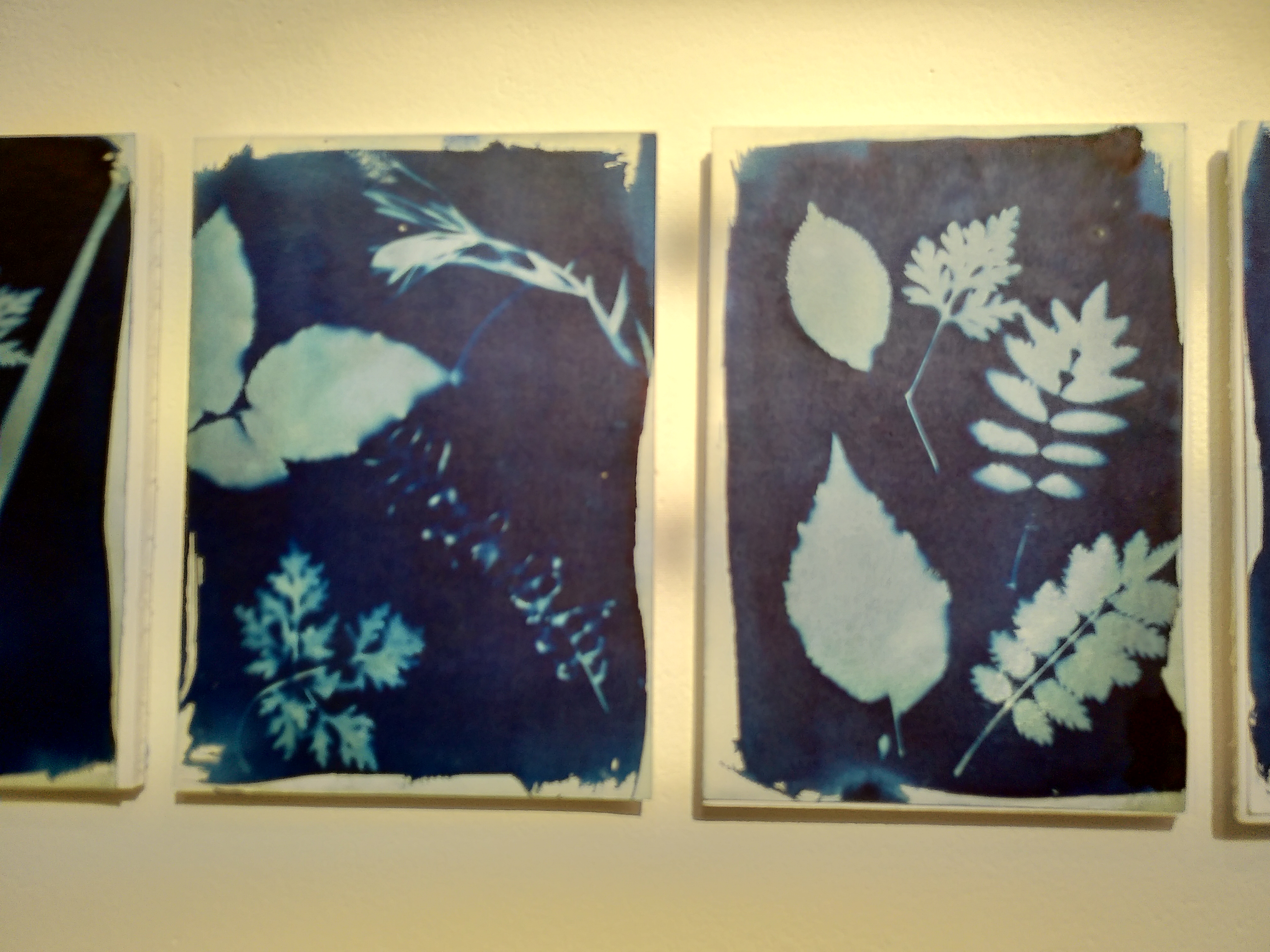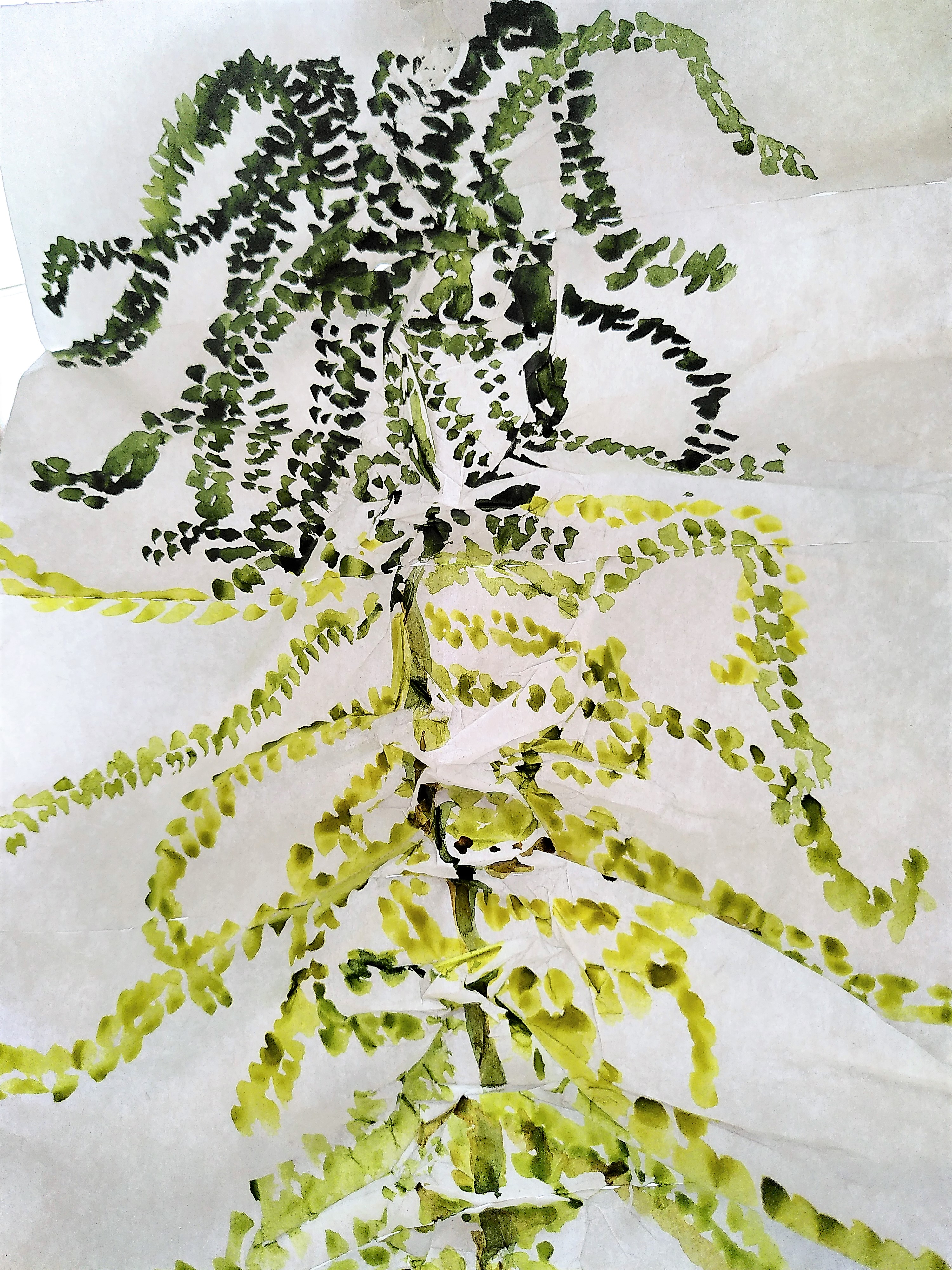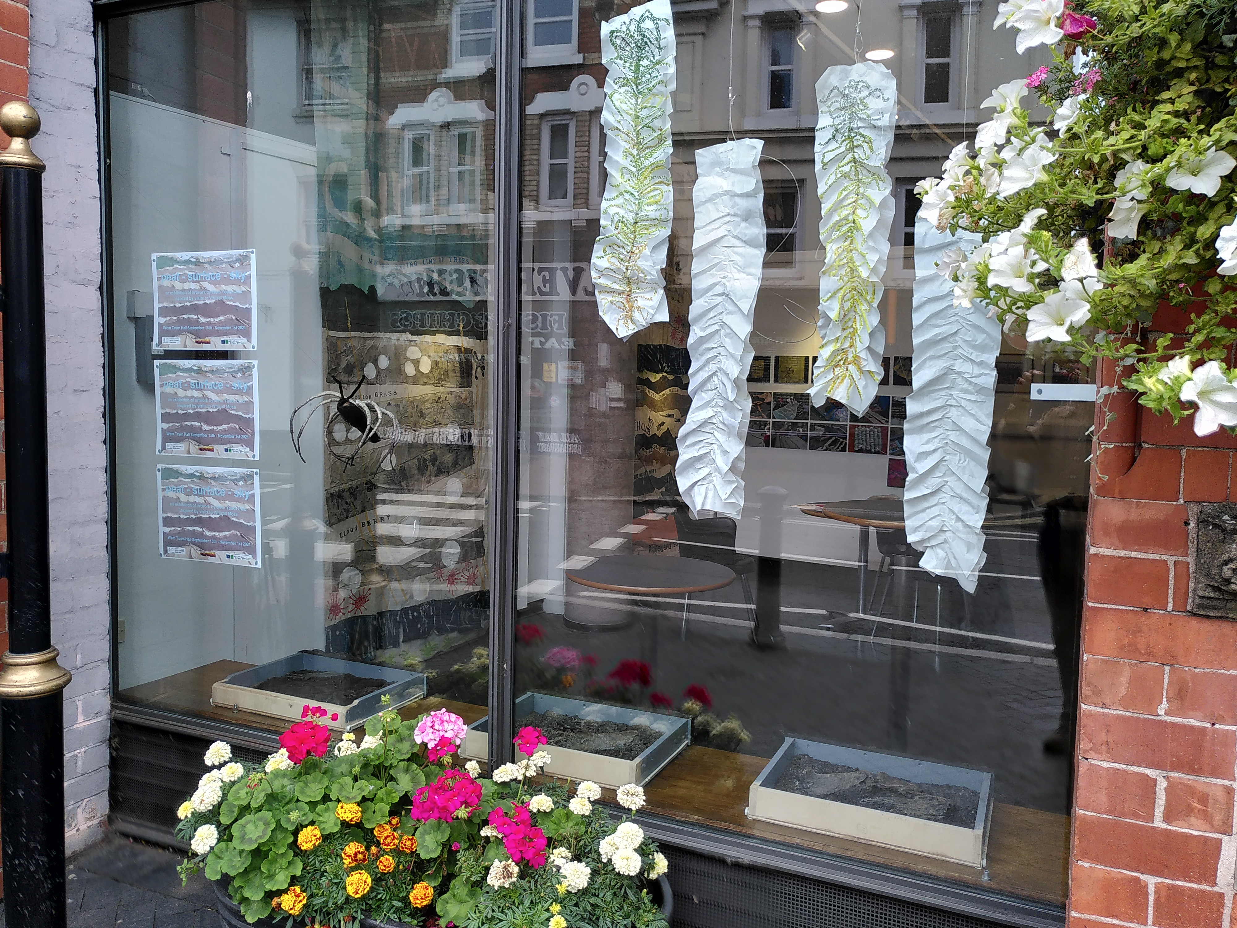 Three 7m long banners incorporate canvas and other fabric painted or dyed using peat and other natural materials gathered at the Moss, eco-printed fabric and cyanotype printing.