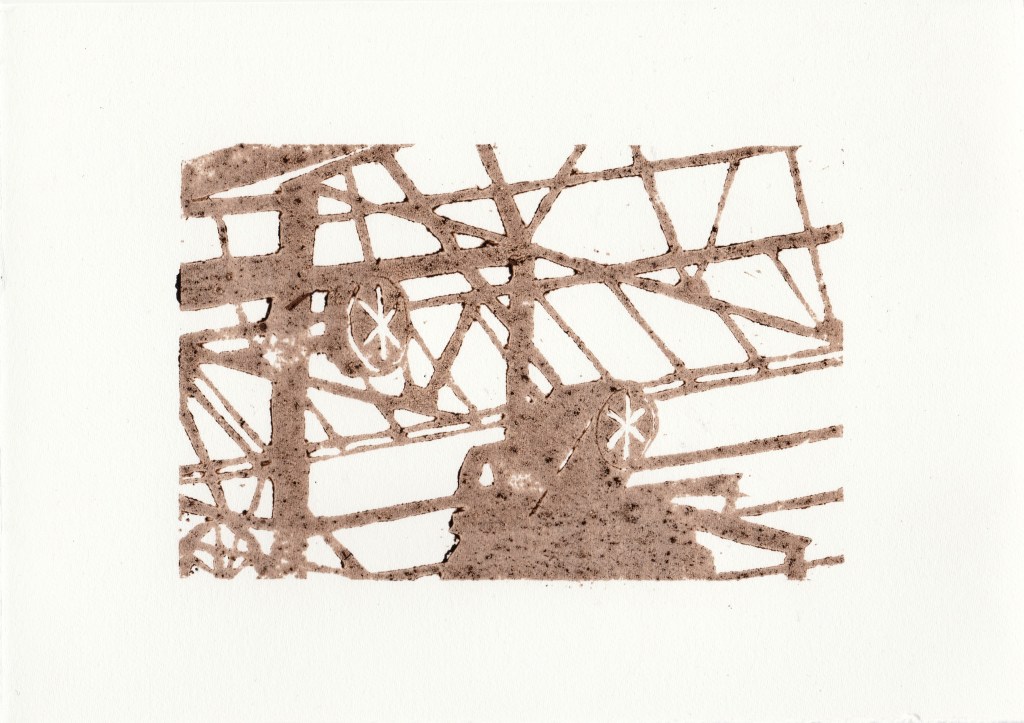 From a series of prints inspired by wildlife and human-made structures and objects found at Whixall Moss