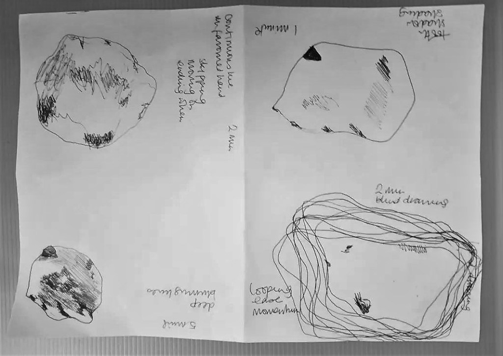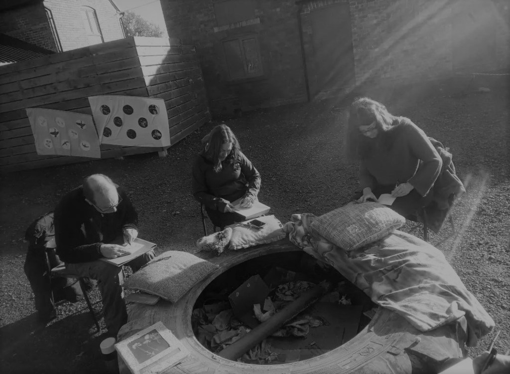Back at the Rural Art Hub, we basked in warm sun, made drawings. of our foraged materials, led by Jill and Andrew unveiled his Book of Condolence to Lost Earthlings made for the Remembrance Day for Lost Species on 30th November. He also brought along a couple of the flags made with the local community at Bumble Hole Nature Reserve in Dudley to celebrate nature and waterways.